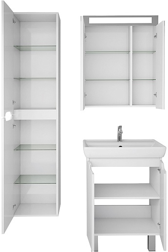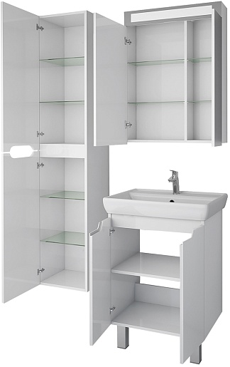В комплекте: тумба, раковина, зеркальный шкаф, ножка (4 шт.), крепеж.