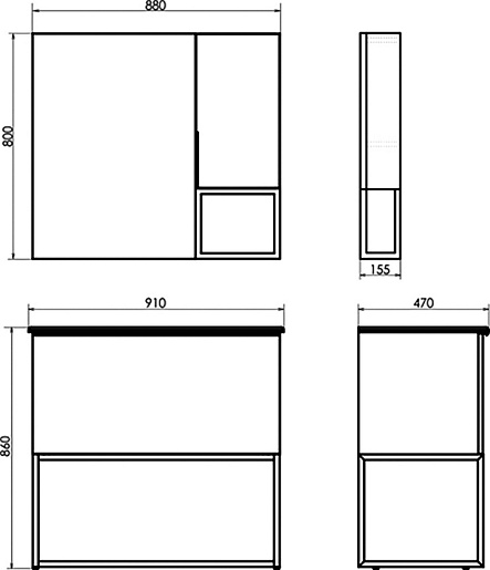 - Материал корпуса/фасада: ЛДСП, металл / ЛДСП, зеркало.