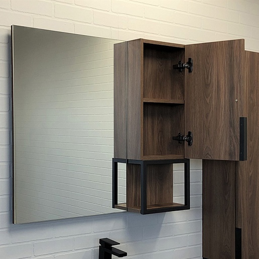 Зеркальный шкаф Равенна 90 дуб темно-коричневый/черный муар