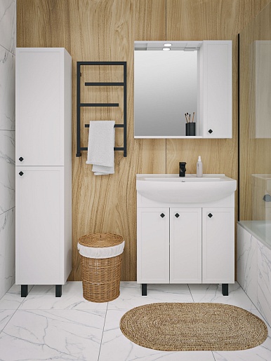 В комплекте: тумба, раковина, зеркальный шкаф, ножка (4 шт.).