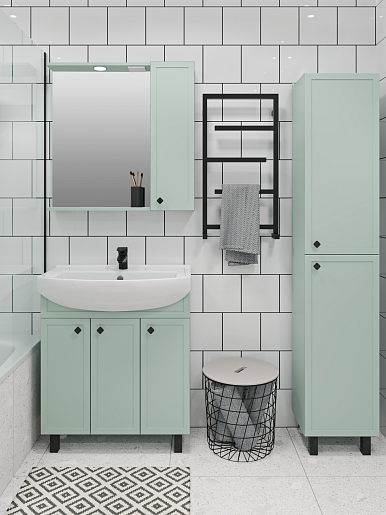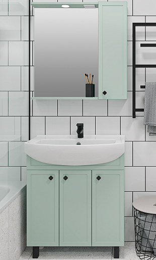 В комплекте: тумба, раковина, зеркальный шкаф, ножка (4 шт.).
