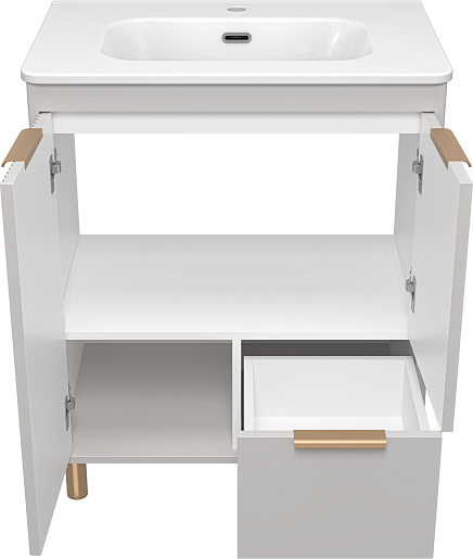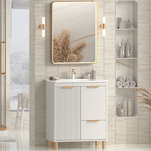 В комплекте: тумба, раковина, зеркало, крепеж, ножки.