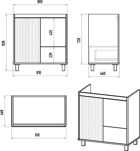 В комплекте: тумба, раковина, зеркало, крепеж, комплект ножек.