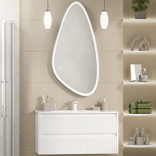 Подвесная тумба с раковиной Brevita Riva 100 белая - арт. RIV-07100-0102Я / B-OND100-01.