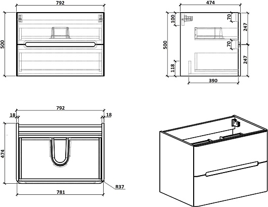 В комплекте: тумба, раковина, зеркало, крепеж.