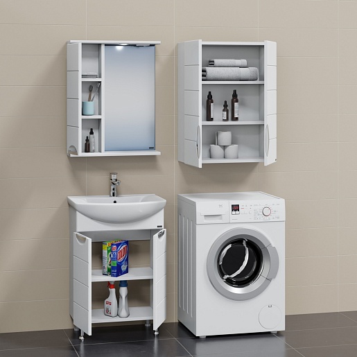 Комплектация: тумба под раковину, раковина, зеркальный шкаф, ножка (4 шт.).