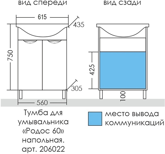Тумба с раковиной Санта Родос 60 N - арт. 206022 / Грация60.