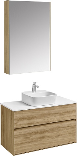 Комплектация: тумба, раковина, столешница, зеркальный шкаф, крепеж.