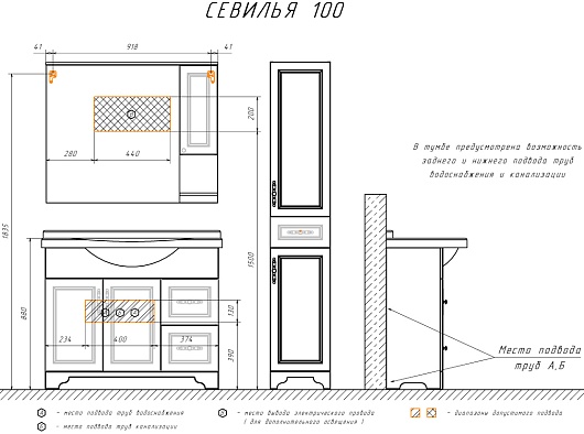 Тумба с раковиной Севилья 100 слоновая кость