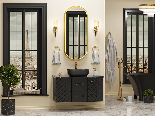 Тумба под раковину Shanel 100 подвесная черная матовая
