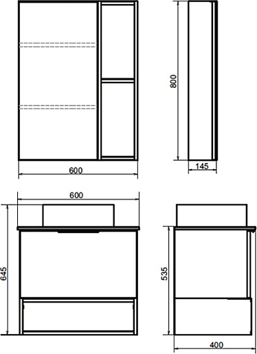 - Материал корпуса/фасада: ЛДСП / ЛДСП, зеркало.