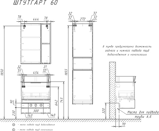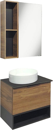 В комплекте: тумба, раковина, зеркальный шкаф, крепеж.