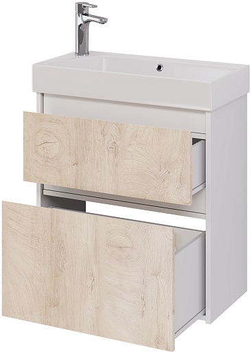 Тумба под раковину Slim 65 подвесная белая/дуб кантри