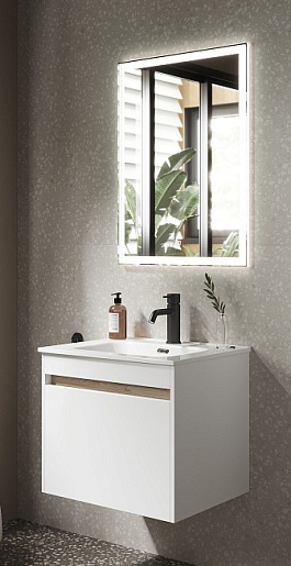 - Дополнительное оснащение зеркала: регулируемая подсветка / подвесы.