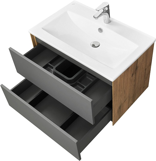 Тумба под раковину Сохо 75 подвесная дуб веллингтон/графит софт