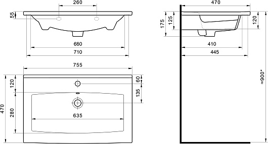 Мебельная раковина Элина 75