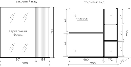 - Материал корпуса/фасада: МДФ / МДФ, зеркало.