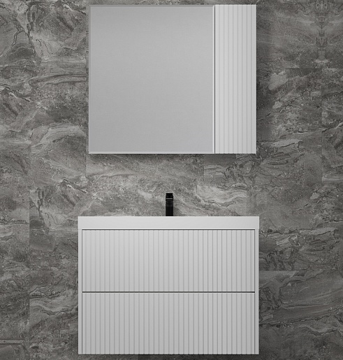 Зеркальный шкаф Стокгольм 80 белый рифленый софт