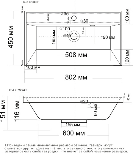 Подвесная тумба с раковиной Водолей Тач 80 - арт. 00009640 / 00004160.