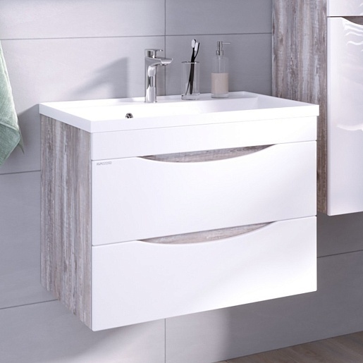 Тумба под раковину Талис 80 подвесная бетон пайн/белая
