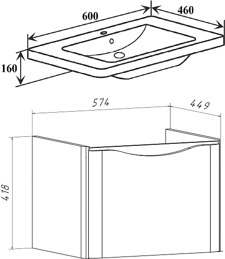 Подвесная тумба с раковиной Runo Тоскана 60 - арт. 00-00001414 (4656760155465) / 00-00001390 (8682368200647).