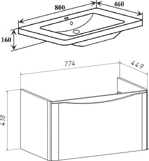 Подвесная тумба под раковину Runo Тоскана 80 - арт. 00-00001417 (4656760155496) / 00-00001391 (8682368200654).