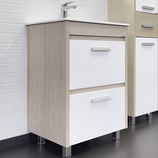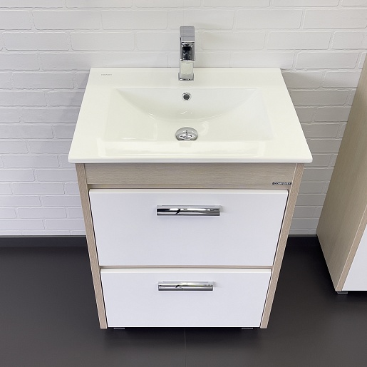 Тумба с раковиной Тулуза 60 белая/сосна лоредо