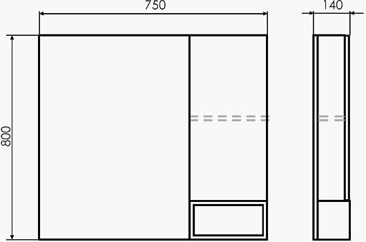 - Размер (ШxВxГ): 750x800x140 мм.