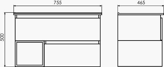 - 2 выдвижных ящика, 1 открытая ниша.