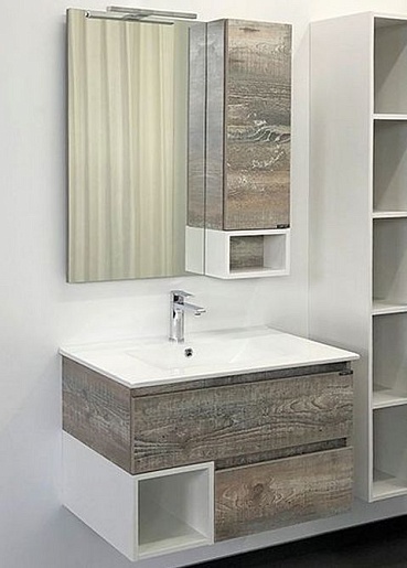 В комплекте: тумба, раковина, зеркальный шкаф, крепеж.