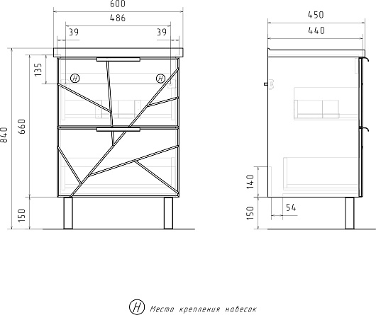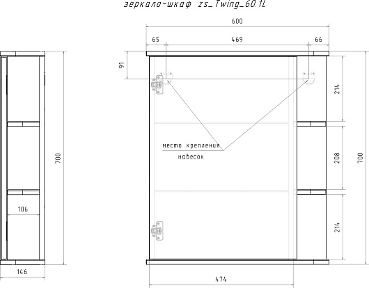 - Размер (ШxВxГ): 600x700x146 мм.