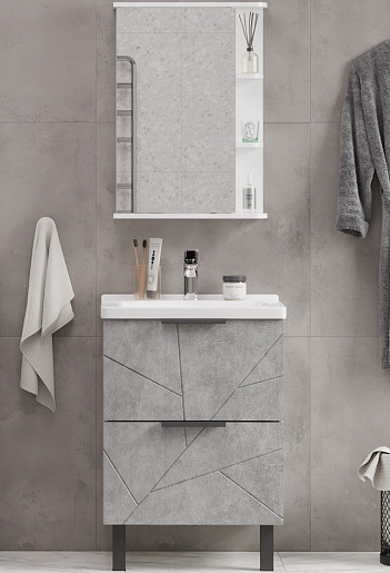 Комплектация: тумба, раковина, зеркальный шкаф, ножка (2 шт.), крепеж.
