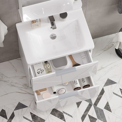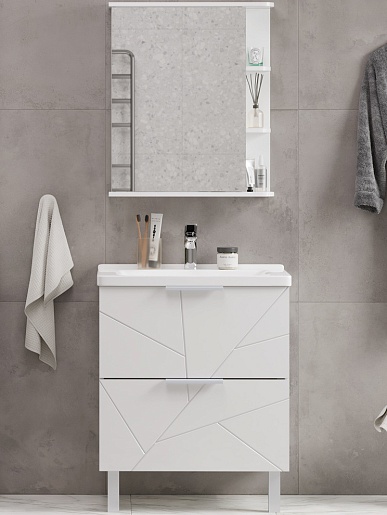 Комплектация: тумба, раковина, зеркальный шкаф, ножка (2 шт.), крепеж.