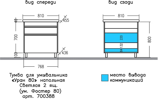 Напольная тумба с раковиной Санта Уран 80 - арт. 700388 / Фостер80.
