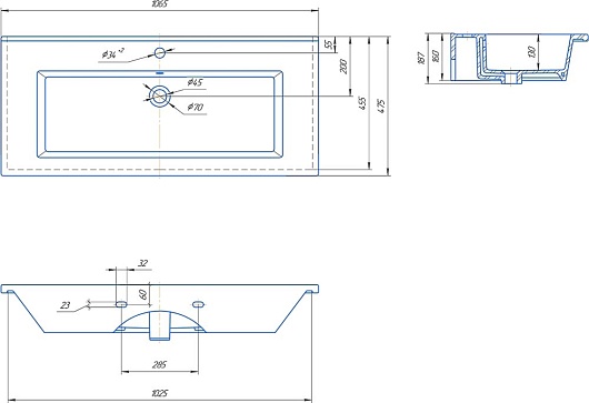 - Размер (ШxВxГ): 102,8 x 72 x 2 см.