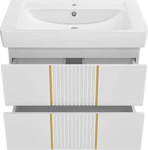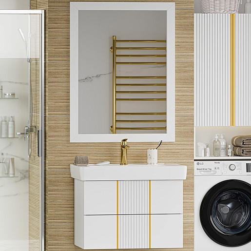 Тумба под раковину Vega 80 подвесная белая/золото