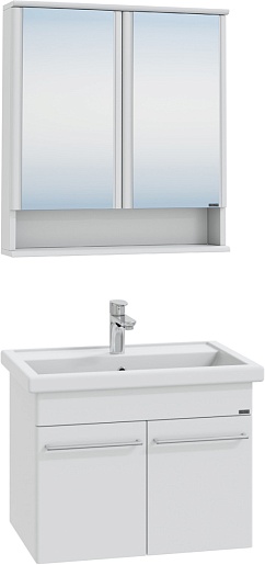 В комплекте: тумба, раковина, зеркальный шкаф, крепеж.