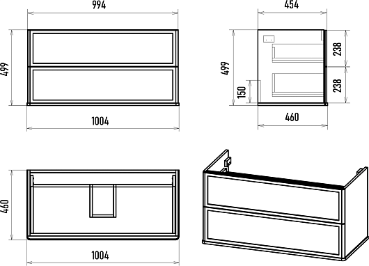 - 2 выдвижных ящика с направляющими скрытого монтажа.