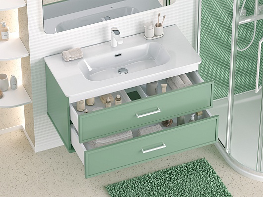 Подвесная тумба с раковиной Brevita Verde 100 зеленая - арт. Ver-09100-0102Я / B-OND100-01.