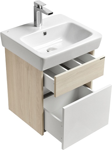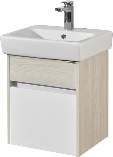 Тумба под раковину Верди Pro 50 подвесная белая/ясень фабрик