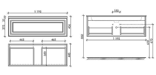 - Дополнительное оснащение зеркала: регулируемая подсветка / подвесы.