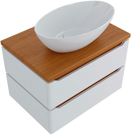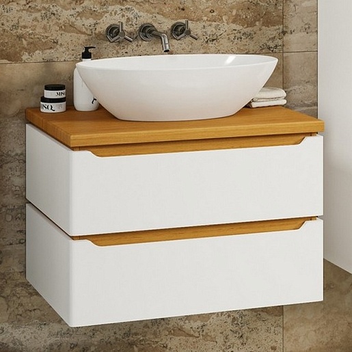 Тумба под раковину Виктория 70 подвесная белая софт/дуб светлый