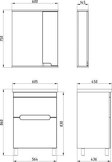 - Размер (ШxВxГ): 600 x 750 x 145 см.