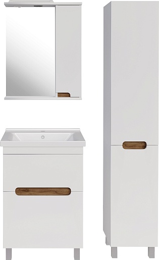 Комплектация: тумба под раковину, раковина, зеркальный шкаф, крепеж, ножки.