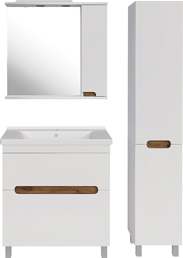 Комплектация: тумба под раковину, раковина, зеркальный шкаф, крепеж, ножки.