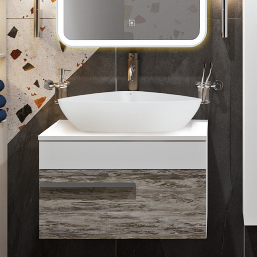 Тумба под раковину Вудлайн 65 скандинавский дуб/белая