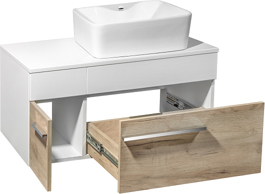 Тумба под раковину Вудлайн 85 дуб крафт/белая