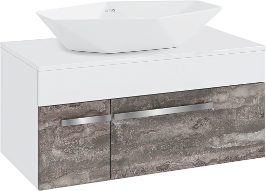 Тумба под раковину Вудлайн 85 железный камень/белая