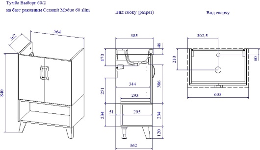 Тумба с раковиной Sanflor Выборг 60 - арт. С16293 / UM-MOD60SL/1.