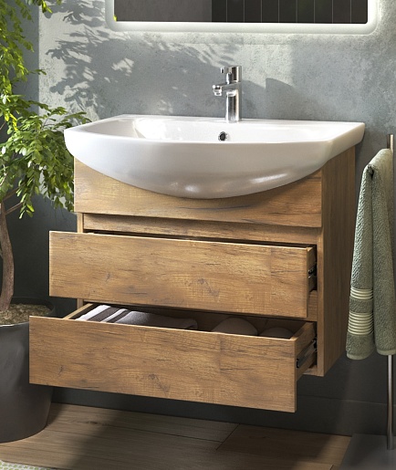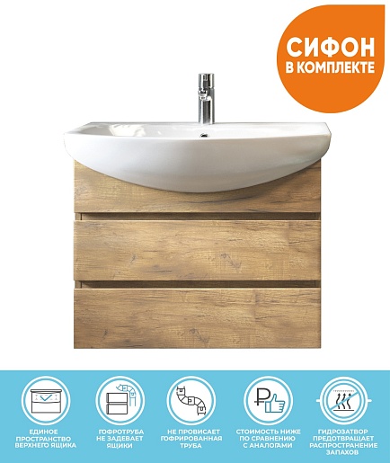 Подвесная тумба с раковиной Vigo Wing 700-0-1 - арт. tp.WIN.BAL.70.2Y дуб золотой / 1.WH20.7.776.